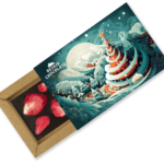 Czekolada gorzka 72% kakao z truskawkami w świątecznym opakowaniu.