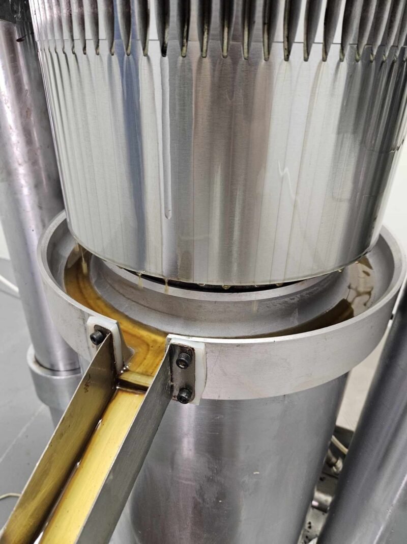 Pod naciskiem 60 Mpa – 600kg/cm2, ściskamy miazgę i przez gęsty materiał przesiąka czysty tłuszcz kakaowy.
