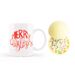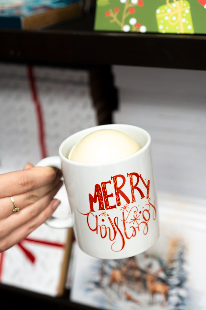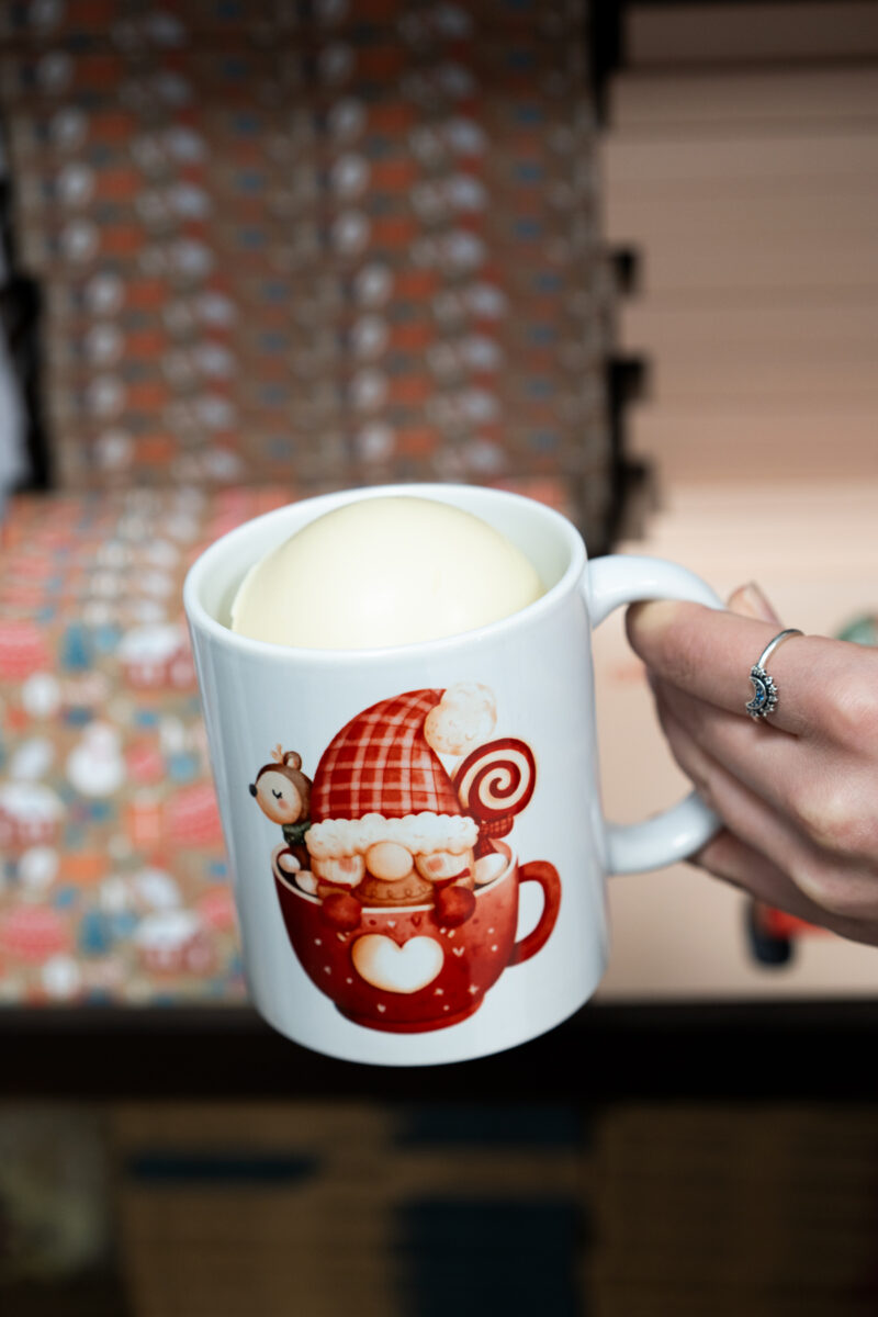 Czekoladowa Bomba biała z piankami marshmallow w świątecznym kubku