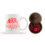 Czekoladowa Bomba mleczna z malinami w świątecznym kubku