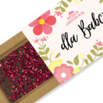 Mleczna czekolada dla babci z maliną na Dzień Babci i Dziadka. Wykwintna tabliczka mlecznej czekolady połączona z owocami – malinami. Urzeka swoją elegancją i wyjątkowym smakiem.