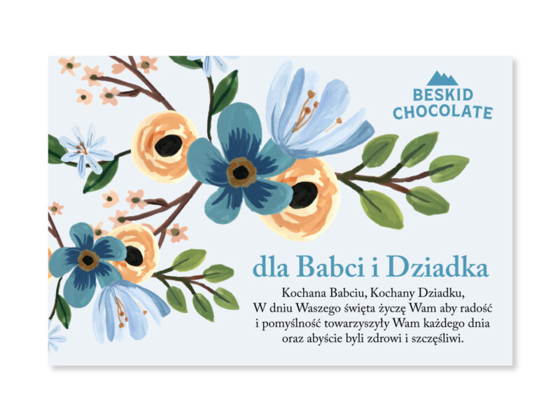 Tabliczka czekolady dla babci i dziadka ręcznie zdobiona czekolada gorzka w ozdobnej owijce z napisem „Dla Babci i Dziadka”.